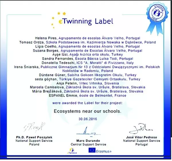 Ryc. 1. Certyfikat eTwinning Label wydany przez narodowe biura Portugalii i Polski