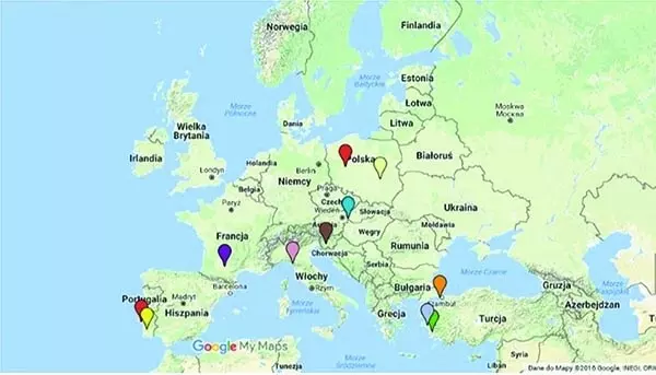 Ryc. 2. Mapa przedstawiająca siedziby szkół biorących udział w projekcie