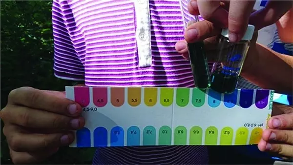 Fot. 1. Badanie na zawartość PO4 w przyszkolnym stawie