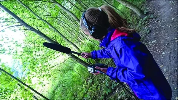 Fot. 2. Słuchanie i nagrywanie ptaków za pomocą specjalistycznego mikrofonu