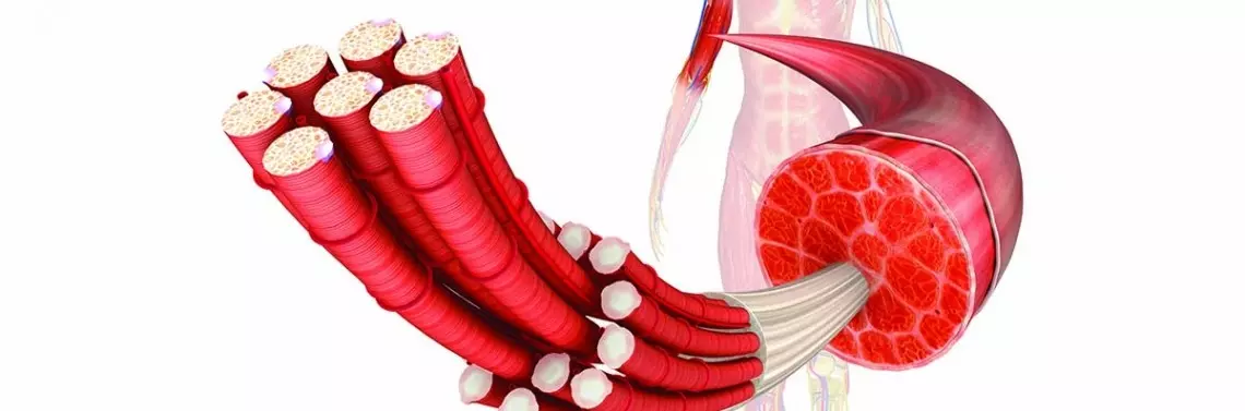 Mięsień poprzecznie prążkowany jest rodzajem tkanki mięśniowej, złożonej z silnie wydłużonych komórek o przekroju walcowatym. Jądra komórkowe są położone obwodowo, natomiast w centrum komórki występują liczne i rozciągające się na całą jej długość miofibryle zbudowane z ułożonych naprzemiennie filamentów cienkich (aktynowych) i filamentów grubych (miozynowych). To właśnie ta cecha budowy objawia się w obrazie mikroskopowym jako charakterystyczne prążkowanie. Zarówno aktyna, jak i miozyna są białkami motorycznymi – mają zdolność poruszania się względem siebie, niejako wsuwania się między siebie. Powoduje to zmniejszenie długości włókien mięśniowych, natomiast rozmiary samych filamentów pozostają niezmienione. Mięśnie poprzecznie prążkowane pracują w sposób zależny od woli, ale stosunkowo szybko ulegają zmęczeniu [6].